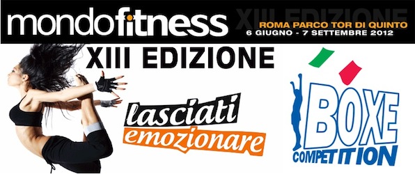 Mondofitness, la più imponente manifestazione sportiva sul territorio nazionale, 100 giorni dedicati allo sport dal 6 giugno al 7 settembre 2012 nel Parco di Tor di Quinto in Viale Tor di Quinto Roma. Per tutti gli amanti del Pugilato… la Boxe Competition settore amatoriale Gym Boxe Federazione Pugilistica Italiana è presente in un area di 300 mq. coperti con tre ring, sacchi, corde, e tutto il necessario, una vera e propria palestra di Pugilato sotto le stelle, ma non ci accontentiamo …. e allora!? allenamento funzionale con il sistema R.C. Functional Training con le più innovative attrezzature per questa metodologia di allenamento, circuiti di allenamento studiati per il modello di prestazione del Pugilato NON MANCATE IL PRIMO APPUNTAMENTO MERCOLEDì 6 GIUGNO ore 18,00 INGRESSO GRATUITO …TUTTI PRESENTI!
