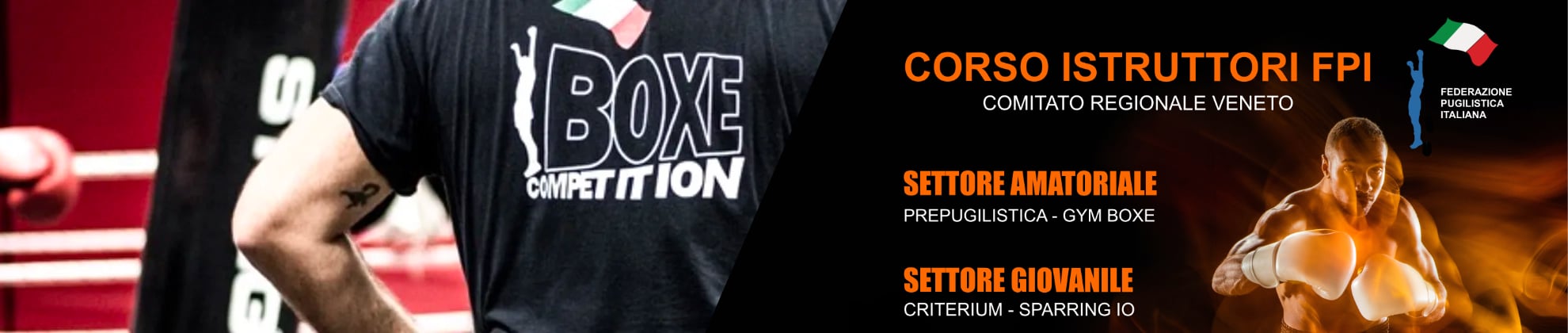 La SSD Gladiators, in collaborazione con Il CR Veneto, Presidente Patrizia Guidi e il Responsabile Nazionale Massimo Barone, organizzano il XVIII° Corso FPI per il conseguimento della qualifica di Istruttore Amatoriale / Giovanile. Importante novità l’inserimento della Giovanile che permette in questo modo con unico corso di avere le qualifica di Istruttore qualifiche del Settore Amatoriale e Giovanile, per poter avviare alla pratica sportiva del Pugilato atleti dai 5 anni ai 65 anni.
